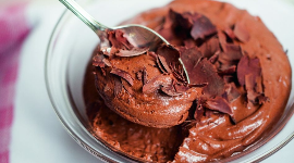 - Sortez la mousse du réfrigérateur 1 h avant de servir et parsemez-la de copeaux de chocolat.